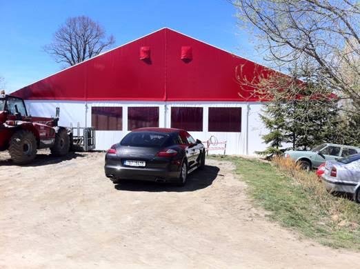 Pre jazdecký klub Amír sme postavili jazdeckú halu. Podľa požiadavky miestneho stavebného úradu má hala červenú strechu z PVC.